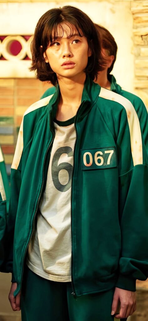 A North Korean defector, Sae-byeok enters the Squid Game to reunite her family. Smart and resourceful, she forms bonds with Ji-yeong and Gi-hun, and joins an alliance for survival. Despite her strength, she’s fatally wounded and later killed by Sang-woo, placing third in the competition and becoming the highest-ranking female player.